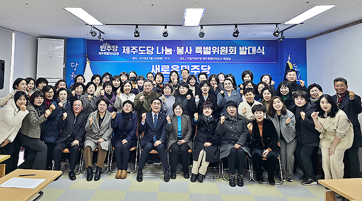 [한라일보] 더불어민주당 제주도당은 지난 24일 당 대회의실에서 박원철 당 부위원장, 홍인숙 제주도의원, 당직자 및 당원들이 참석한 가운데 '나눔·봉사특별위원회 발대식'을 개최했다.