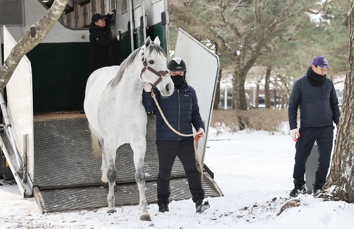 제주목장에 도착한 씨수말 닉스고. 한국마사회 제공