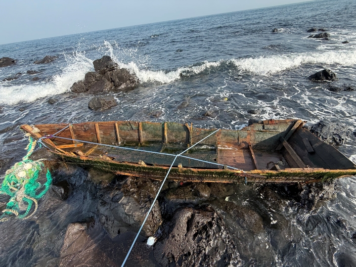 29일 오전 9시 30분쯤 제주시 애월읍의 한 해안가에서 의문의 목선이 발견됐다. 제주해양경찰서 제공