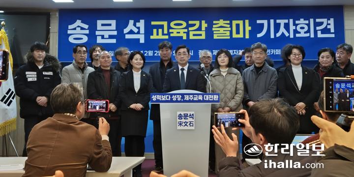 2일 제주교육감 선거 출마를 선언하는 송문석 전서귀중앙여중 교장.