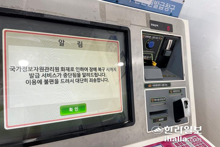 지난해 발생한 국가정보자원관리원 화재로 인한 발급 서비스 중단. 한라일보DB