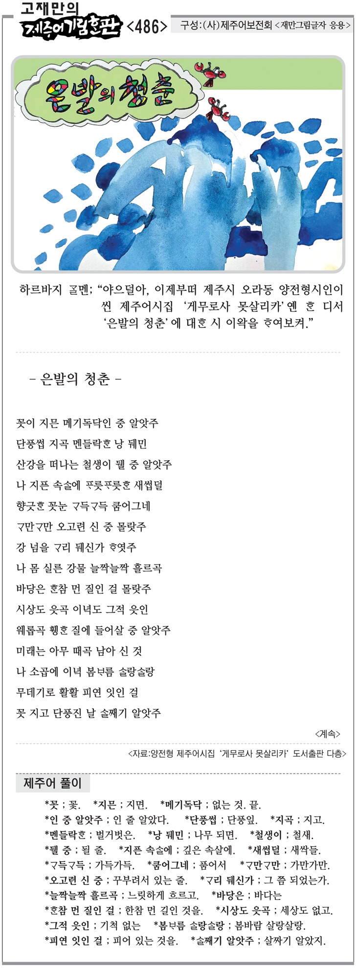 [고재만의 제주어기림혼판] 제주어 풀이(486)
