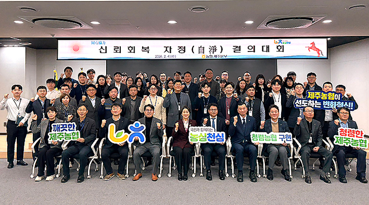 농협중앙회 제주본부(본부장 이춘협)와 NH농협은행 제주본부(본부장 고은정)는 4일 대회의실에서 범농협 임·직원 100여 명이 참석한 가운데 부패척결과 청렴농협 실현을 위한 '신뢰회복 자정(自淨) 결의대회'를 개최했다.