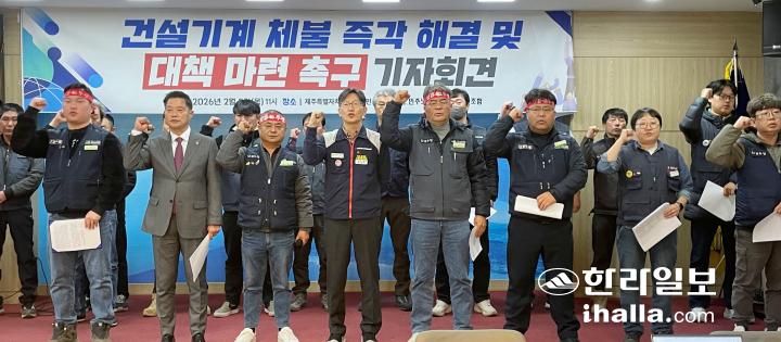 건설산업연맹 전국건설노동조합 제주건설기계지부(이하 노조)는 5일 오전 제주도의회 도민카페에서 기자회견을 열고 “건설기계 임대료 체불, 원청 건설사는 책임을 다하고 정부는 관리감독을 철저히 하라”고 촉구했다.