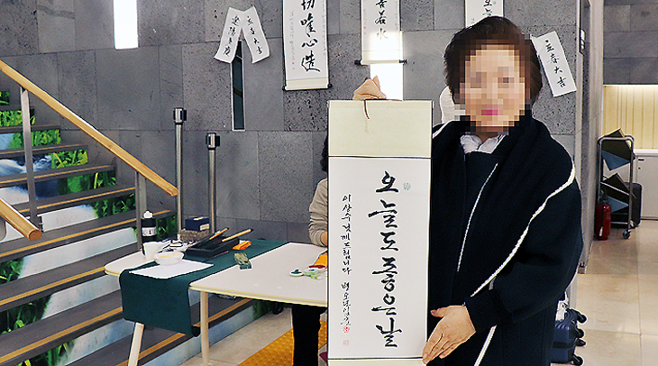 이날 김연숙 추사체연구회 작가가 참여해 방문객들이 원하는 가훈을 정성스럽게 써주며 큰 호응을 얻었다.