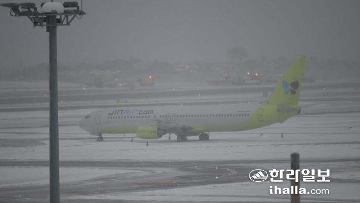 눈 쌓인 제주국제공항. 한라일보DB