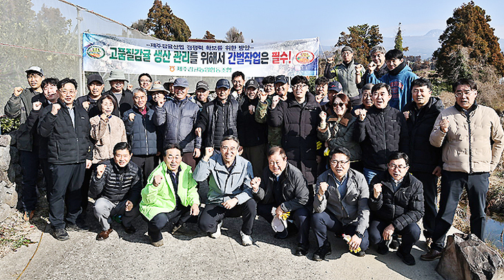 제주감귤농협(조합장 송창구)은 지난 5일 서귀포시 중문지점 지역 내 조합원의 과원에서 고품질감귤 생산 기반 조성을 위한 '감귤원 1/2 간벌 발대식'을 개최했다.