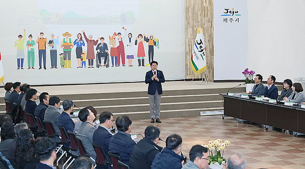 오영훈 제주도지사는 "정책은 설계 단계에서부터 현장의 의견을 반영해야 한다"며 "제주시 간부 공직자가 앞장서 달라"고 당부했다.