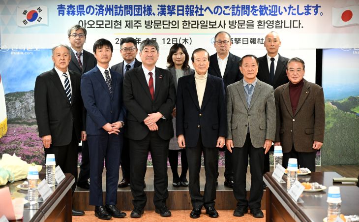일본 아오모리현청 관광교류추진부 후지모리 히로타카 이사 등 8명으로 구성된 일본 아오모리현 제주 방문단이 12일 한라일보사를 방문해 본사 대회의실에서 간담회를 갖고 민간교류 활성화 등에 대해 의견을 나눴다. 강희만기자