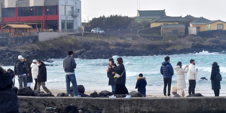 제주 겨울바다 즐기는 관광객. 한라일보DB