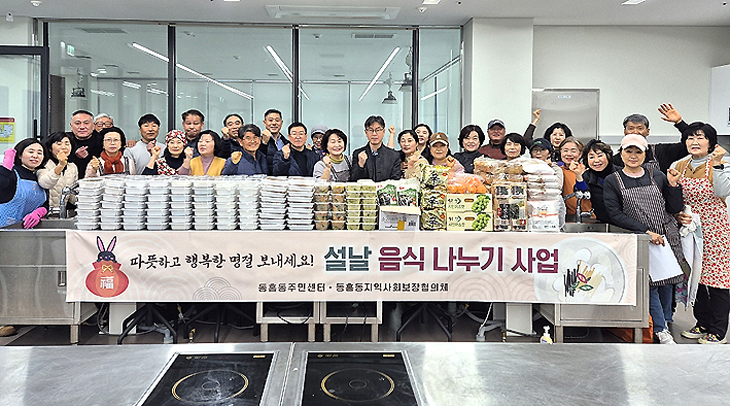 서귀포시 동홍동지역사회보장협의체(공동위원장 김철식·강익자)는 지난 14일 서귀포삼다종합사회복지관에서 '설 명절 음식 나누기 사업'을 진행했다. 이날 지역 내 저소득 50가구에 직접 만든 명절 음식을 전달했다.