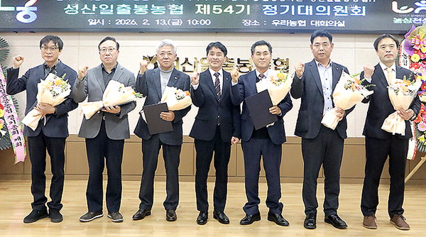 [한라일보] 제주성산일출봉농협(조합장 박명종)은 지난 13일 본점 대회의실에서 대의원과 주요 내빈, 임직원 등 150여 명이 참석한 가운데 '2026년도 제54기 정기대의원회'를 개최했다.