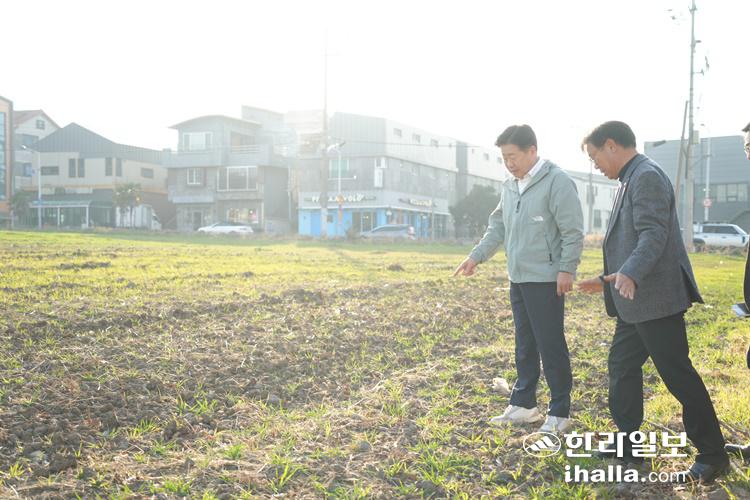 오영훈 제주도지사가 지난 20일 제주시 노형동 옛 일본영사관 토지를 둘러보고 있다. 제주도 제공