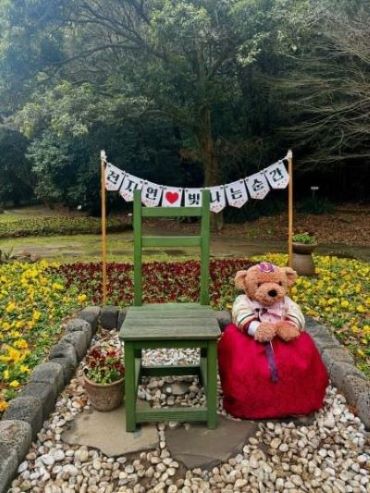 특히 이번 연휴 기간 천지연폭포에 새롭게 단장한 전통 한복 차림의 곰돌이 인형 '귤곰e' 포토존은 내외국인 관광객들에게 사진찍기 명소로 좋은 반응을 얻었다.