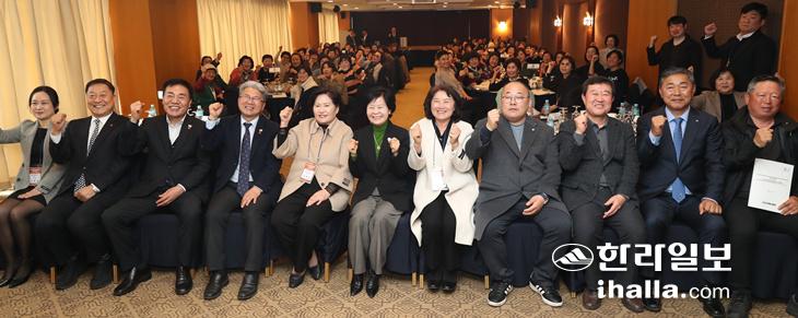 지난 23일 제주에서 열린 전국해녀협회 정기총회 참석자들이 기념 촬영을 하고 있다. 제주도 제공