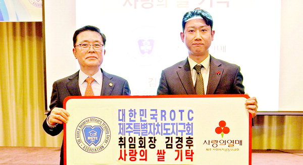 [한라일보] 대한민국ROTC제주특별자치도지구회(신임회장 김경후)는 최근 회장 이·취임식에서 받은 쌀 470㎏를 제주사회복지공동모금회(회장 강지언)에 기탁했다.