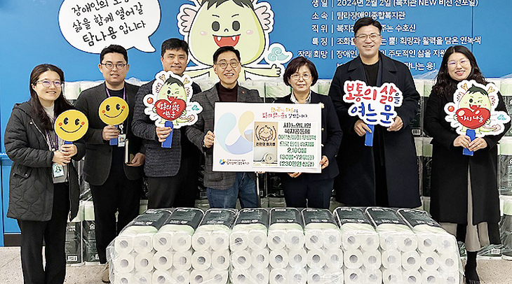 (사)느영나영복지공동체(대표 김지호)는 26일 친환경 화장지 2160개(230만원 상당)을 탐라장애인종합복지관(관장 고현수)에 전달했다.