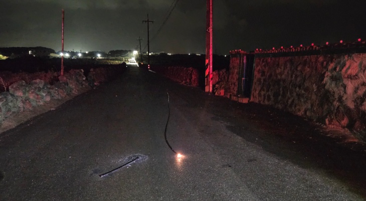 26일 오후 7시35분쯤 제주시 우도면 연평리에서 고압선 단락으로 정전이 발생해 주민과 관광객들이 불편을 겪었다. 제주소방안전본부 제공