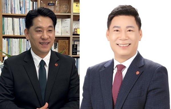왼쪽부터 한권 의원, 박왕철 공무원연금공단 상임이사.