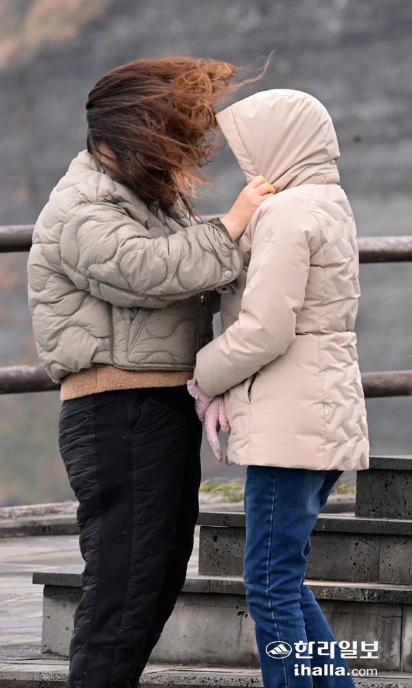 옷깃 여미는 관광객들