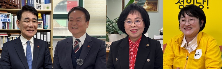 왼쪽부터 더불어민주당 박호형 의원과 김희현 전 정무부지사, 국민의힘 원화자 의원, 정의당 강순아 제주도당위원장.