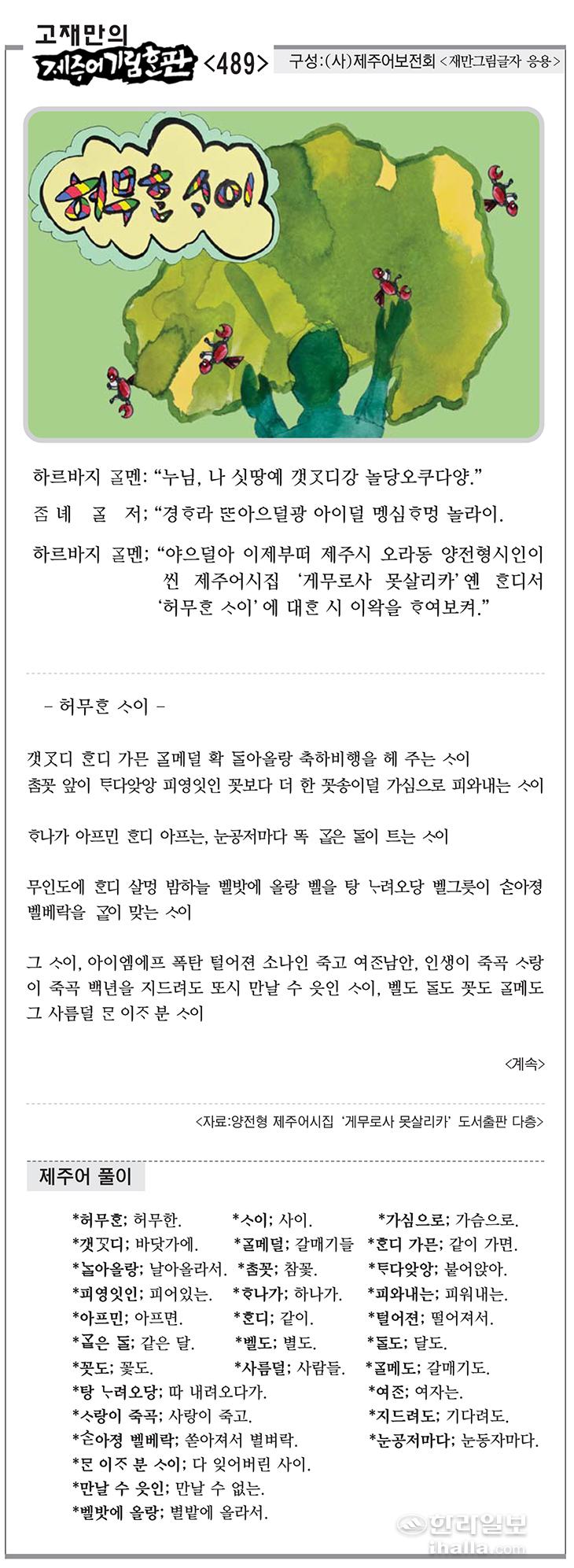[고재만의 제주어기림혼판] 제주어 풀이(489)