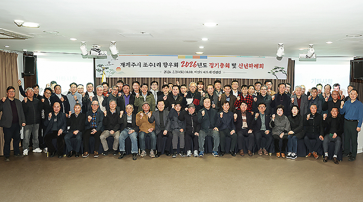 재제주시 조수1리향우회(회장 김순화)는 지난달 28일 제주시아젠토피오레 컨벤션에서 '2026년도 정기총회 및 신년하례회'를 개최했다. 이날 2025년도 결산·감사보고를 승인하는 한편 2026년도 사업계획·예산안을 심의·의결했다.