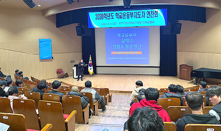 제주특별자치도교육청은 지난 6일 제주학생문화원 소극장에서 도내 초중고 학교운동부 지도자 100여명이 참가한 가운데 '2026학년도 학교 운동부 지도자 연수'를 개최했다.