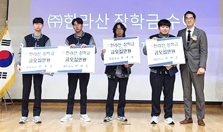 이날 한라산은 한림항공우주고 신입생 4명에게 총 200만원의 장학금을 전달하며 미래 산업 인재 양성을 응원했다. 또한 한림고에서는 신입생 및 학업성적 우수자 2명에게 총 200만원의 장학금을 전달했다.