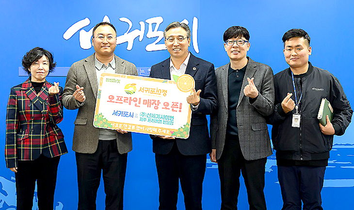 서귀포시 공식 온라인 쇼핑몰 '서귀포in정'이 안덕면 소재 신세계 제주 프리미엄 전문점 내 오프라인 매장을 오픈하고 오는 4월 30일까지 본격 운영에 돌입했다. 만감류 소비 촉진을 위해 운영되는 '서귀포in정' 오프라인 매장은 매장 내 '매일올레 몬딱 마켓'에 마련돼 있으며, 한라봉과 천혜향 등 서귀포산 만감류의 소포장(2.5㎏ 실속형) 구성으로 합리적인 가격에 만날 수 있다.