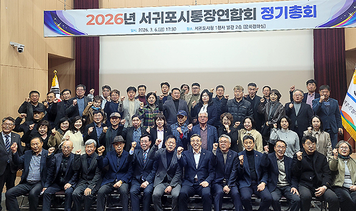 서귀포시통장연합회(회장 김도연)는 지난 6일 서귀포시청 별관 문화강좌실에서 '2026년 서귀포시통장연합회 정기총회'를 개최했다. 이날에는 오순문 서귀포시장, 김대진 도의원, 서귀포시통장연합회 회원 등 70여명이 참석해 2025년 사업결산, 2026년 사업계획 및 예산안 등을 논의했다.