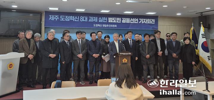 도정혁신 원탁추진위원회가 11일 제주도의회 도민카페에서 기자회견을 열고 있다. 김채현기자