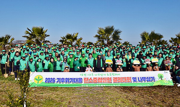 새마을지도자제주특별자치도협의회(회장 변봉남)는 지난 10일 서귀포시 하천리 올란이물 일대에서 오영훈 제주도지사, 오순문 서귀포시장, 김창기 제주도새마을회장 등 200여 명이 참여한 가운데 '1도민·1그루 나무심기 초록릴레이'를 진행했다.