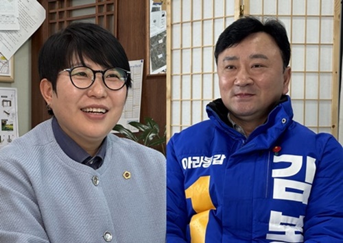 왼쪽부터 더불어민주당 홍인숙 의원, 김봉현 예비후보.