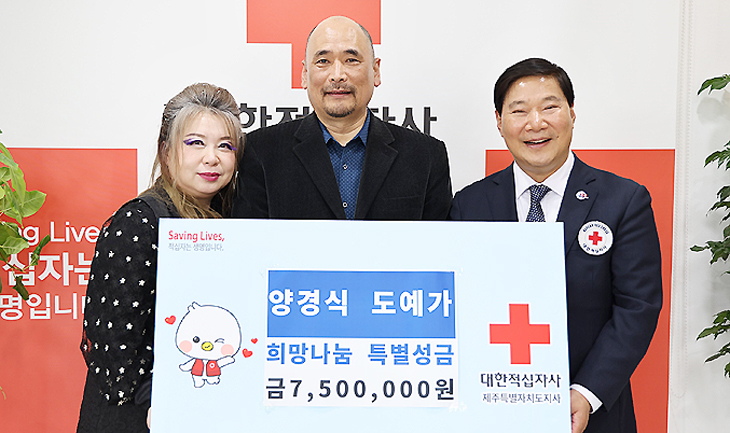 양경식 도예가는 최근 지역사회 어려운 이웃을 돕기 위해 대한적십자사 제주특별자치도지사(회장 정태근)에 희망나눔 특별성금 750만원을 기탁했다.