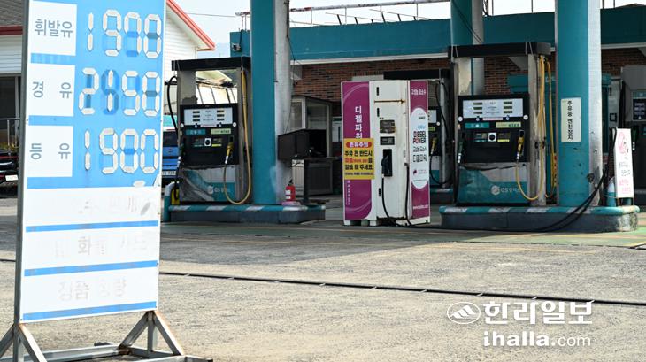 [한라일보] 정부가 석유 최고가격제를 검토 중인 12일 제주시 안덕면 동광리의 한 주유소가 한산한 모습을 보이고 있다. 강희만기자