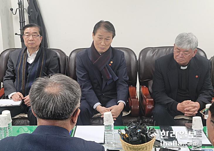 권오을 국가보훈부 장관이 12일 제주시 봉개동 제주4·3평화기념관 내 4·3유족회 사무실에서 가진 4·3유족회와의 면담에서 발언을 하고 있다. 박소정기자