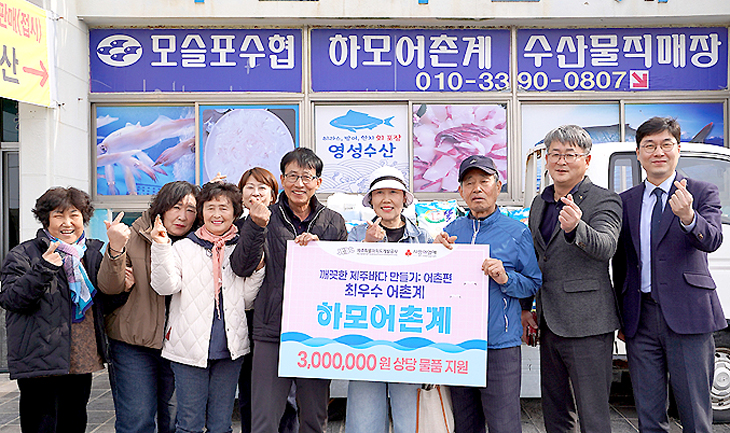 제주개발공사(사장 백경훈)는 지난 11일 서귀포시 대정읍 하모리어촌계에서 투명페트병 수거사업 매각대금 300만원을 제주사회복지공동모금회(회장 강지언)에 기탁했다.