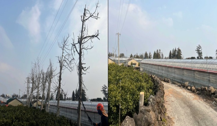 감귤원 방풍수 정비 전후 모습. 제주시 제공