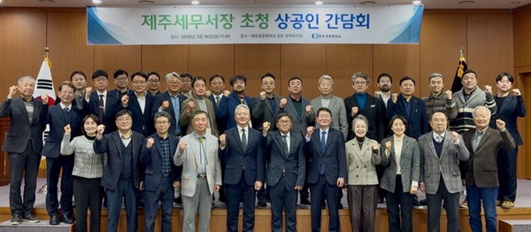 [한라일보] 제주상공회의소(회장 양문석)와 제주세무서(서장 김용재)는 16일 기업체 대표와 관계자 등 30여 명이 참석한 가운데 '제주세무서장 초청 상공인 간담회'를 열고, 지역 기업의 세정 현안과 애로사항을 공유하는 시간을 가졌다.