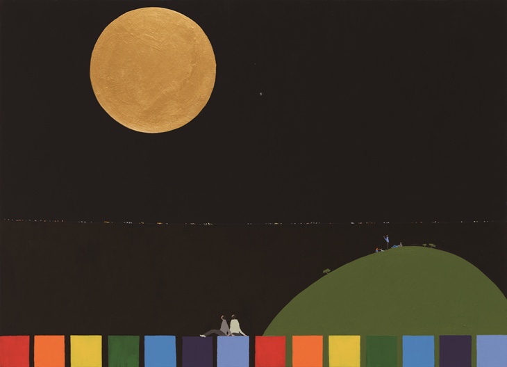 돌담갤러리에서는 '벛꽃나들이', '소원', '소원을 말해봐' 등을 선보인다. 문예회관 전시엔 '휴식' 연작 등이 나온다. 하늘 위에서 지상을 바라보는 듯한 시점의 화면에는 삼삼오오 거니는 사람들의 즐거움과 행복 등이 전해진다. 그의 그림에 배어나는 도저한 낙관은 우리들 각자의 기억 속에 가장 따듯했던 그곳이 자리하고 있기 때문인지 모른다.