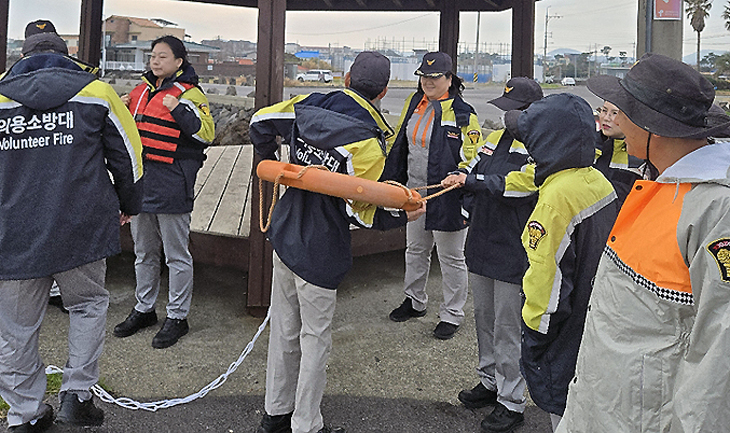 제주시 조천의용소방대(대장 최선호·고명순)는 지난 14일 관내 항·포구 순찰과 인명구조함 점검을 실시했다.