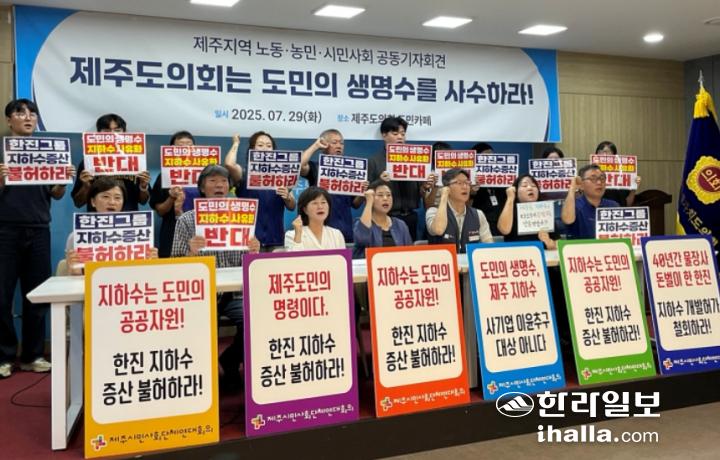 이 단체는 "반복되는 한국공항의 지하수 취수량 증산 신청과 연장 허가 논란은 제주의 지하수 관리 원칙이 기업의 경제적 논리 앞에 얼마나 취약한지를 여실히 보여주고 있다"며 "이제 제주도의회는 관행적인 조건부 동의라는 면죄부를 버리고, 부동의 결정을 통해 지하수 주권을 선언해야 한다"고 밝혔다.