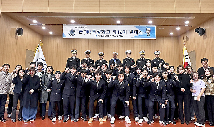 [한라일보] 서귀포산업과학고등학교(교장 문경삼)는 지난 19일 교내 심경관에서 국방부 제19기(서귀포산업과학고 제7기) 발대식을 개최했다. 교육부와 국방부가 추진하는 '2026년 군(軍) 특성화고 지원 사업'의 시작을 알리는 자리다.