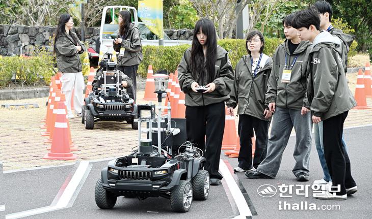 [한라일보] 24일 서귀포시 안덕면 신화월드에서 열린 제13회 국제e모빌리티엑스포에서 EV 자율주행 경진대회 참가자들이 출전 준비를 하고 있다. 강희만기자