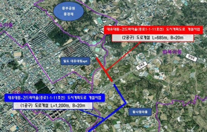 제주시가 오는 4월 중 제주시 일도지구 대유대림아파트~연북로 구간에 대한 도로 개설에 착수한다. 제주시 제공