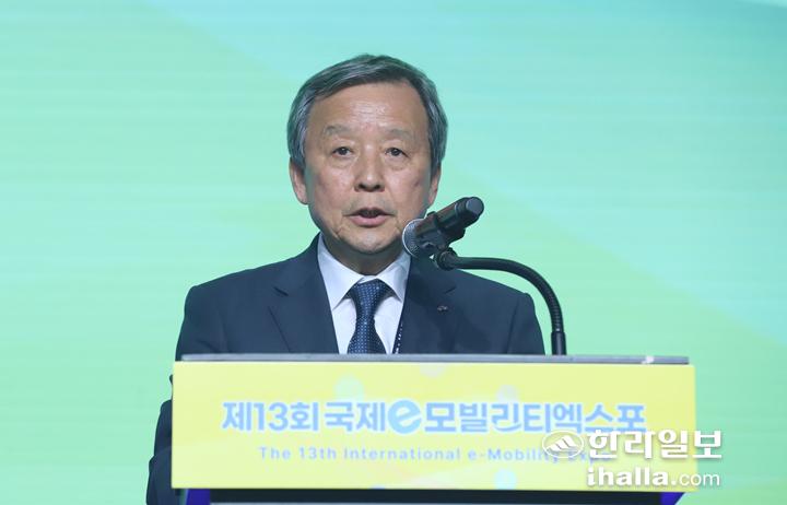 제13회 국제 e-Mobility 엑스포 폐회사하는 김대환 세계전기차협의회(GEAN) 회장. 국제 e-Mobility 엑스포사무국 제공