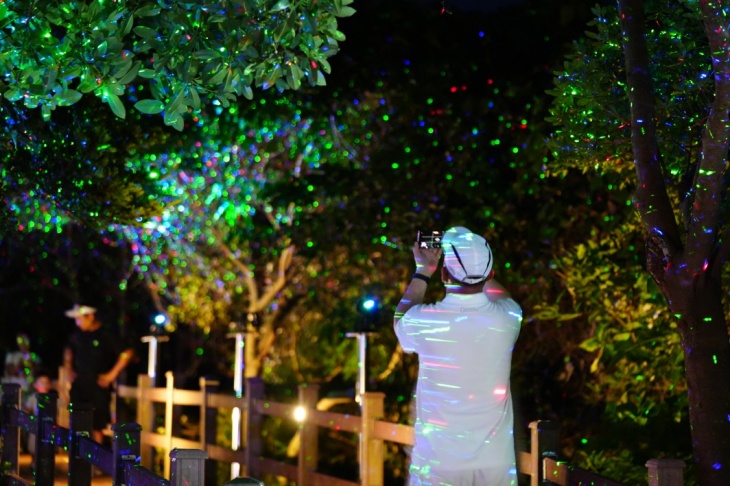 29일 서귀포시에 따르면 지난해 7월 개장한 새섬공원 야간조명은 산책로 1.1㎞구간에 미디어파사드와 다양한 빛깔의 경관조명으로 갈아입은 이후, 현재까지 방문객 6만2000명이 관람했다.