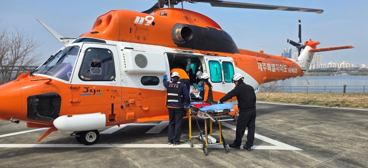 지난 24일 제주소방 119항공대가 에크모 환자를 수도권 소재 상급병원으로 자체 이송했다. 제주도소방안전본부 제공