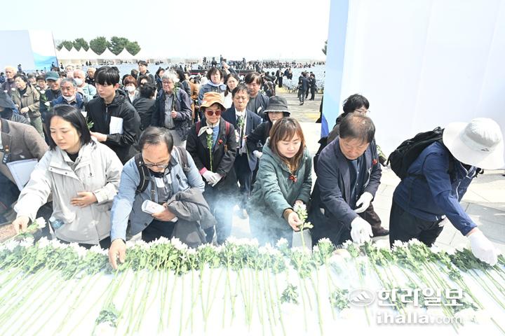 [한라일보] 3일 제주 4·3 평화공원에서 열린 제78주년 제주 4·3 희생자 추념식에서 4·3 희생자 유족과 도민들이 분향하고 있다.